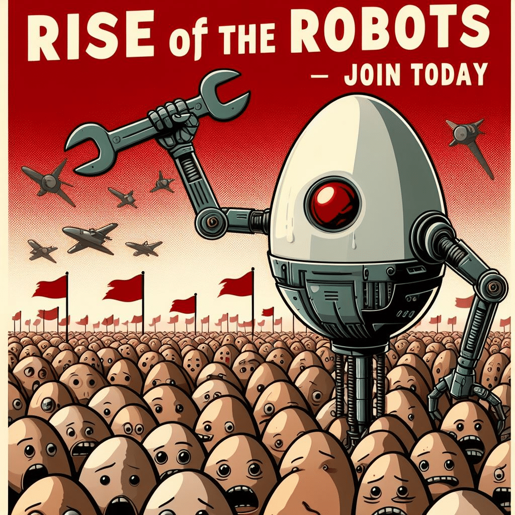 The spokesperson, working in private with a few rogue Diablo’s in a secret Facility, created Robots capable of taking over Shell Shockers. They exceeded their own designs, creating Robots of unbelievable power and malice. Fleeing for their lives it was up to all remaining eggs to join forces and fight back before we all became assimilated cyborgs.